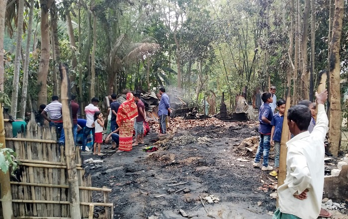 বৃহস্পতিবার (১৬মার্চ) ভোর ৪টায় স্থানীয় হর গোবিন্দ মল্লিক এর বাড়িতে অগ্নিকান্ডের ঘটনাটি ঘটে। পরে ফায়ার সার্ভিসকে খবর দেওয়ার ১ঘন্টার পরে আসলে এসময়ের ভিতরে আগুনে পুরো বসত ঘর দোকান জ্বলে ছাই হয়ে যায়।