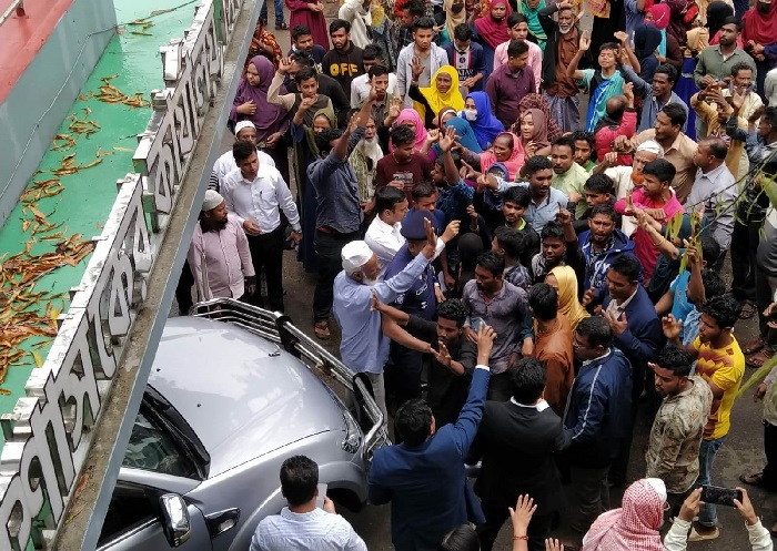 রোববার দুপুরে তাদের দুজনের পক্ষে এলাকার শতাধিক বাসিন্দা নির্বাচনের ফলাফলে প্রতারণার অভিযোগ এনে জেলা প্রশাসকের কাছে স্মারকলিপি দিতে তার কার্যালয়ে আসেন। এসময় জেলা প্রশাসক প্রথমে স্মারকলিপি গ্রহণ করতে চান নি বলে অভিযোগ এলাকাবাসীর। এতে ক্ষুব্ধ হয়ে তারা জেলা প্রশাসেকর কার্যালেয়র সামনে বিক্ষোভ শুরু করেন। এসময় জেলা প্রশাসক গাড়িতে চড়ে কার্যালয়ের বাইরে যেতে চাইলে তার গাড়ি অবরুদ্ধ করে রাখেন বিক্ষোভকারীরা।