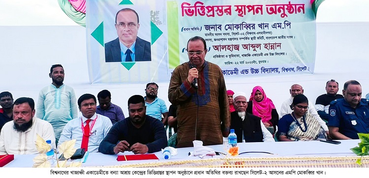 বুধবার (২২ মার্চ) দুপুরে সিলেটের বিশ্বনাথ উপজেলার খাজাঞ্চী একাডেমি অ্যান্ড উচ্চ বিদ্যালয়ে ৪ কোটি ১০ লাখ টাকা ব্যয়ে ৩ তলা বিশিষ্ট বন্যা আশ্রয়কেন্দ্র নির্মাণ কাজের ভিত্তিপ্রস্তর স্থাপন অনুষ্ঠানে প্রধান অতিথির বক্তব্যে তিনি এ কথা বলেন।