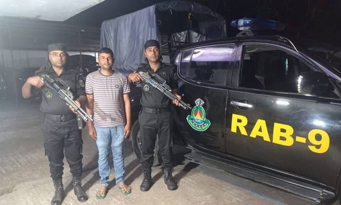 শনিবার (২৫ মার্চ) রাতে উপজেলারর ভানুগাছ লংগুরপাল থেকে অভিযান পরিচালনা করে তাকে আটক করা হয়।
