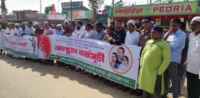 বিদ্যুৎ, গ্যাসসহ দ্রব্যমূল্যের ঊর্ধ্বগতি, আওয়ামী লীগ সরকারের সর্বগ্রাসী দুর্নীতির প্রতিবাদ এবং সরকারের পদত্যাগসহ গণতন্ত্র পুনরুদ্ধারের কেন্দ্রীয় কর্মসূচির অংশ হিসেবে ১০ দফা দাবিতে জুড়ীতে অবস্থান কর্মসূচী পালন করেছেন উপজেলা বিএনপির নেতৃবৃন্দ।