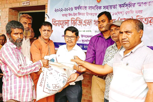 পবিত্র ঈদুল ফিতর উপলক্ষে মানবিক সহায়তা কর্মসূচির আওতায় সুনামগঞ্জের তাহিরপুর উপজেলায় ভিজিএফের চাল বিতরণ করা হয়েছে। মঙ্গলবার (১৮ এপ্রিল) উপজেলার বালিজুরী ইউনিয়ন পরিষদ থেকে এক হাজার তিনশ পরিবারের মাঝে ১০ কেজি করে চাল বিতরণ করা হয়।