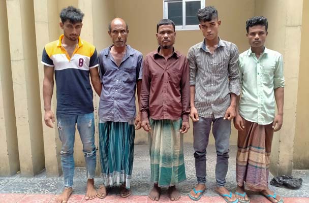 আটককৃতরা হচ্ছে- কানাইঘাট উপজেলার পশ্চিম দর্পনগর গ্রামের মৃত ফণাফুল বারীর ছেলে আব্দুর রহমান (৪৫), একই গ্রামের মৃত এখলাছুর রহমানের ছেলে মারুফ উদ্দিন (২২), একই উপজেলার দিঘিরপাড় গ্রামের আলফাজ উদ্দিনের ছেলে তারেক আহমদ (২২), গোলাপগঞ্জ উপজেলার বুধবারীবাজার ইউনিয়নের কালিডহর গ্রামের মৃত আব্দুল খালিকের ছেলে লুলন মিয়া (৬০), লুলন মিয়ার ছেলে সাজু মিয়া (২১)। এসময় সাইফুর রহমান মাহিন নামে এক চোর পালিয়ে যায়।