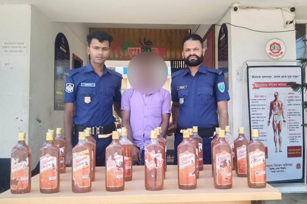 বিজ্ঞপ্তিতে বলা হয়েছে, গতকাল রাত ১০ টার সময় গোপন সংবাদের ভিত্তিতে কানাইঘাট থানাধীন সুরইঘাট বাজার এলাকায় অভিযান চালিয়ে ২১ বোতল ভারতীয় মদসহ রুবেলকে আটক করা হয়।