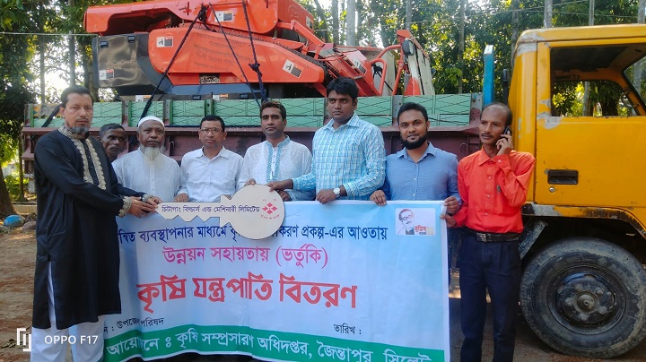কৃষি সম্প্রসারণ অধিদপ্তর জৈন্তাপুর উপজেলা আয়োজিত স্থানীয় কৃষকদের মধ্যে সরকারিভাবে ভর্তুকি মূল্যে প্রান্তিক চাষিদের মধ্যে সহায়তার অংশ হিসাবে ধান কাটা ও মাড়াই মেশিনসহ কৃষি যন্ত্রপাতি বিতরণ করা হয়েছে।