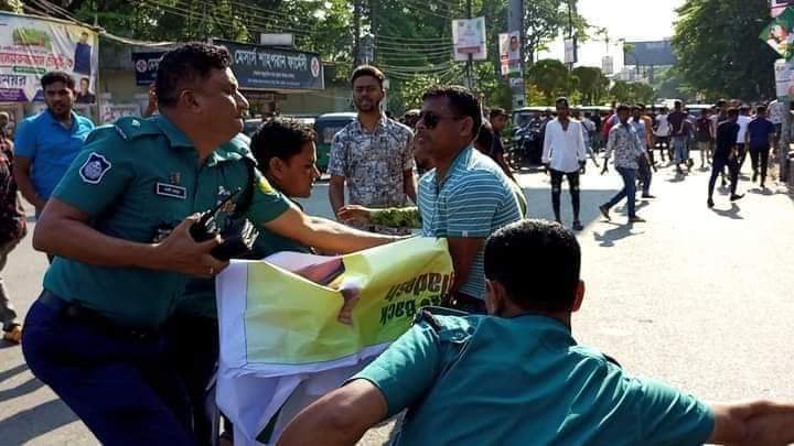আসামীদের ছুড়া ইট-পাটকেলের আঘাতে এএসআই/প্রানেশ রঞ্জন, আবুল কালাম শুভ, ইসমাইল হোসেন, মোজাহিদ আহত হন। তখন পুলিশ উশৃঙ্খল বিএনপি ও ছাত্রদলের নেতাকর্মীদের ধাওয়া করলে তারা ছত্রভঙ্গ হয়ে বিভিন্ন দিকে পালিয়ে যাওয়ার সময় আটজনকে আটক করা হয় এবং অপরাপর আসামীগণ পালিয়ে যায়। আলামত হিসেবে সেখান থেকে ১৮টি বাঁশের লাঠি ও ১৫ ইটের টুকরো জব্দ করা হয়েছিল।