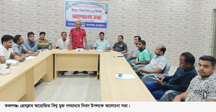বুধবার (৩ মে) বিকেল সাড়ে ৫ টায় কমলগঞ্জ প্রেসক্লাবের আয়োজনে প্রেসক্লাব মিলনায়তনে অনুষ্ঠিত আলোচনা সভায় সংগঠনের সভাপতি বিশ্বজিৎ রায়ের সভাপতিত্বে ও সাধারণ সম্পাদক মো. মোস্তাফিজুর রহমানের সঞ্চালনায় মূল প্রবন্ধ উপস্থাপন করেন কমলগঞ্জ সাংবাদিক সমিতির সভাপতি নুরুল মোহাইমিন মিল্টন।