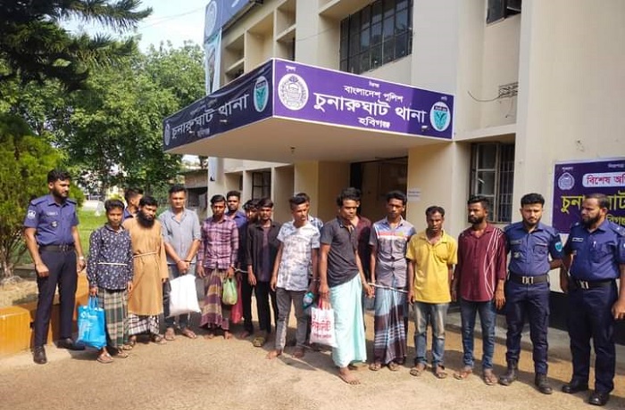 গ্রেপ্তারকৃতরা হলেন -উপজেলার ঘনশ্যামপুর গ্রামের -মোঃ আঃ করিমের পুত্র মোঃ বিল্লাল মিয়া(৩২), ওসমানপুর গ্রামের মৃত উকিল মিয়ার পুত্র মোঃ বাহার মিয়া(৩৫),মৃত রফিক মিয়ার পুত্র মোঃ জয়নাল মিয়া(২৯), বিলপাড় গ্রামের ফিরোজ মিয়ার পুত্র মোঃ এমরান মিয়া(২৯), লস্করপুর চা-বাগানের মৃত সোহেল মুন্ডার পুত্র বিশাল মুন্ডা(২৫), জাজিউতা গ্রামের আব্দুল মতিনের পুত্র মালেক মিয়া(৩৮), খালেক মিয়া(৩৪), জুয়েল মিয়া(২৯), পাট্টাশরিফ গ্রামের মৃত ইউসুফ আলীর পুত্র আক্কাস আলী(৩৮), শাহিদ মিয়া(৪০), শাহিদ মিয়ার স্ত্রী মোঃ আছমা আক্তার (৩৫), বিলপাড় গ্রামের ফিরোজ মিয়ার পুত্র শেখ সুমন (৩৩), ঘনশ্যামপুর গ্রামের মোঃ হাছন আলীর পুত্র মোঃ শাহ জাহান মিয়া(২৫), পৌর এলাকার বাল্লা রোডের হেলাল মিয়ার স্ত্রী শিরিন আক্তার সেলিনা(৩৫), উত্তর বড়কাপন গ্রামের মৃত মুক্তার আলীর পুত্র বাচ্চু মিয়া(৩৫)।