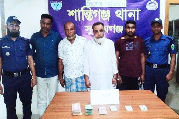 সুনামগঞ্জের শান্তিগঞ্জ উপজেলায় বিশেষ অভিযানে ৪ জনকে আটক করেছে থানা পুলিশ। এ সময় নগদ টাকাসহ জুয়াখেলার সামগ্রী বিভিন্ন উদ্ধার করেছে পুলিশ।