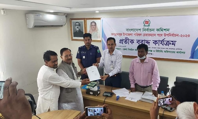 সুনামগঞ্জের জগন্নাথপুরে উপজেলা পরিষদের চেয়ারম্যান পদে উপনির্বাচন উপলক্ষে প্রতিদ্বন্দ্বী প্রার্থীদের মধ্যে প্রতীক বরাদ্দ দেয়া হয়েছে।