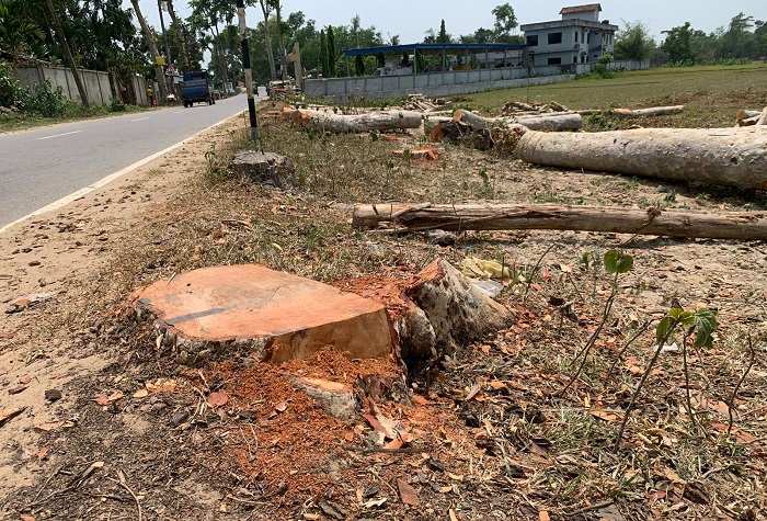 স্থানীয় পৌরসভা, বনবিভাগ ও সওজে খোঁজ নিয়ে জানা যায়, সড়কের পাশের জায়গাটি সওজের, মেয়র মো. জুয়েল আহমদ বনবিভাগের কাছ থেকে নিলামের মাধ্যমে এই গাছ কাটার অনুমতি নিয়েছেন। ইতোমধ্যে ১২৯ টি গাছ কেটে ফেলছেন।