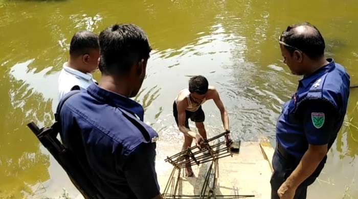 গোলাপগঞ্জে প্রবাসীর বাড়ি ও কবরস্থানের সীমানা প্রাচীরের দেয়ালের চুরি হওয়া কিছু মালামাল উদ্ধার করেছে পুলিশ। বৃহস্পতিবার দুপুর আড়াইটার দিকে উপজেলার লক্ষণাবন্দ ইউনিয়নের নিজ ফুলশাইন্দ গ্রামের দলই বাড়ির একটি পুকুর থেকে চুরি হওয়া প্রায় অর্ধমন রড উদ্ধার করে পুলিশ।
