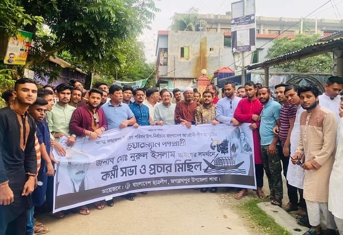 সুনামগঞ্জের জগন্নাথপুরে আসন্ন উপজেলা পরিষদের চেয়ারম্যান পদে উপ-নির্বাচনে বাংলাদেশ আওয়ামী লীগের মনোনীত প্রার্থী মো. নুরুল ইসলামের সমর্থনে মাঠে নেমেছে উপজেলা ছাত্রলীগ।