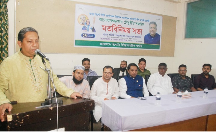 আসন্ন সিলেট সিটি করপোরেশন নির্বাচনে বাংলাদেশ আওয়ামী লীগ মনোনীত প্রার্থী আনোয়ারুজ্জামান চৌধুরীর সমর্থনে বিভিন্ন সামাজিক সংগঠনের উদ্যোগে মতবিনিময় সভা অনুষ্ঠিত হয়েছে।