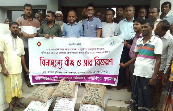 সুনামগঞ্জের জগন্নাথপুর উপজেলা কৃষি অধিদপ্তরে আয়োজনে কৃষকদের মধ্যে আমন ধানের বীজ ও সার বিতরণ করা হয়েছে।