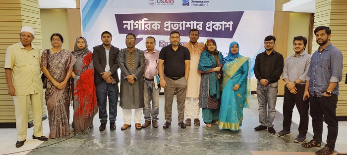 নাগরিক প্রত্যাশা প্রকাশ শীর্ষক এই কর্মশালায় উপস্থিত ছিলেন, সিলেট জেলা আওয়ামী লীগের সাংগঠনিক সম্পাদক সাইফুল আলম রুহেল, সিলেট মহানগর সংগঠক সাইফুল আলম, সিলেট জেলা আওয়ামীলীগের বন ও পরিবেশ বিষয়ক সম্পাদক ও প্যানেল চেয়ারম্যান মোশতাক আহমেদ পলাশ, জেলা আওয়ামীলীগের সদস্য ডা. নাজরা চৌধুরী, মহানগর মহিলা দলের যুগ্ন সম্পাদক রিনা আক্তার, মহানগর বিএনপি’র সাবেক সাংগঠনিক সম্পাদক ও মাল্টি পার্টি এডভোকেসি ফোরাম (এমএএফ) এর সাধারণ সম্পাদক মোর্শেদ আহমদ মুকুল এবং সিলেট জেলা আওয়ামীলীগের দপ্তর সম্পাদক আক্তারুজ্জামান চৌধুরী জগলু, লিডিং ইউনিভার্সিটির প্রভাষক ডা. সাবরিনা ফরিদা ও জারিন তাসনিম এলাহি, লিডিং ইউনিভার্সিটির পুরকৌশল বিভাগের সহকারী অধ্যাপক অমিত চক্রবর্তী, শাহজালাল ইউনিভার্সিটি অব সাইন্স এন্ড টেকনোলোজির ডিপার্টমেন্ট অফ ইকোনমিক্সের ফ্যাকাল্টি মেম্বার ড. মোহাম্মদ এনামুল হক, বাংলাদেশ হিন্দু বৌদ্ধ খিষ্টান ঐক্য পরিষদ সিলেট মহানগরের সাধারন সম্পাদক প্রদীপ কুমার দে, জাতীয় ইমাম সমিতির সাধারন সম্পাদক মাওলানা জালাল উদ্দিন ভুঁইয়া, ডেমোক্রেসি ইন্টারন্যাশনাল এর রিজিওনাল ম্যানেজার মোসাম্মদ রাহিমা বেগম, সিনিয়র কমিউনিকেশনস ম্যানেজার আরাফাত আলী সিদ্দিক ও ইলেক্ট্ররাল প্রোগ্রাম অ্যাসোসিয়েট মাহতাব উদ্দিন চৌধুরী। সহ নগরের বিভিন্ন শ্রেনী পেশার নাগরিক।