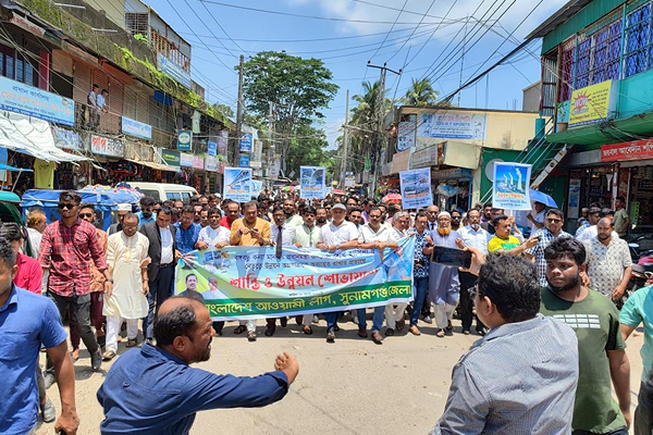 সুনামগঞ্জে শান্তি ও উন্নয়ন শোভাযাত্রা করেছে আওয়ামী লীগ।