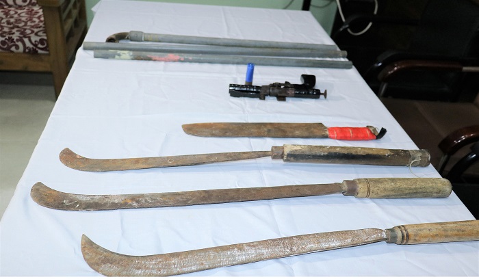 সিলেটের ওসমানীনগরে প্রাথমিক বিদ্যালয়ের সীমানার জায়গা নিয়ে বিরোধের জেরে সংঘর্ষের ঘটনায় ব্যবহৃত গুলিসহ দেশীয় তৈরি পাইপগান ও ধারালোঅস্ত্র উদ্ধার করেছে পুলিশ। বুধবার মধ্য রাতে অভিযান চালিয়ে উপজেলার হামতনপুর গ্রামের মতিউর রহমানের বসত ঘরের পাশ থেকে অস্ত্রগুলো উদ্ধার করা হয়। এছাড়াও অভিযানকালে সংঘর্ষের সাথে জড়িত থাকার অভিযোগে ৫জনকে আটক করেছে পুলিশ। এঘটনায় একটি অস্ত্র মামলা ও একটি মারামারি মামলা দায়েরের প্রস্তুতি চলছে বলে জানিয়েছে পুলিশ।