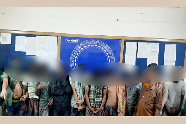 আটকরা হলেন মো. আলী (২৩), রুবেল মিয়া (২৮), নয়ন মিয়া (৩০), মো. রমিজ (১৯), জাবেদ মিয়া (৪৮), মো. সুজায়েল মিয়া (৩৫), মো. সুরুজ আলী (৪৫), কাউছার মিয়া (৩৪), মো. শূয়াইবুর রহমান (৩১), মো. জুবায়ের (২১) ও মো. মুক্তার হোসেন শেখ (৫০)।