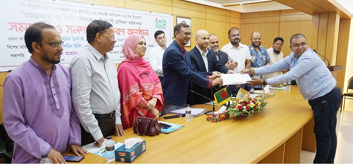 এসএমই ফাউন্ডেশন ও দি সিলেট চেম্বার অব কমার্স এন্ড ইন্ডাস্ট্রি’র যৌথ উদ্যোগে “চামড়াজাত পণ্য তৈরী” বিষয়ক ৫ দিনব্যাপী প্রশিক্ষণ কর্মশালার সমাপনী ও সনদপত্র বিতরণ অনুষ্ঠান বুধবার বিকেলে চেম্বার কনফারেন্স হলে অনুষ্ঠিত হয়।