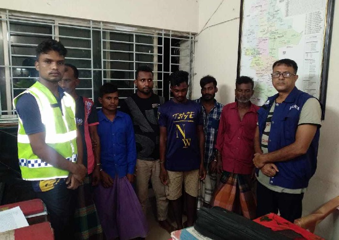আটককৃতরা হলেন, উপজেলার ভেলাপুর গ্রামের মৃতঃ বিল্লাল মিয়ার ছেলে সোহেল মিয়া (২০), মৃত দুধ মিয়ার ছেলে শিশু মিয়া (৪৮), সিরাজ মিয়ার ছেলে রাসেল মিয়া(২৬), মঙ্গলপুর গ্রামের মৃত আলী হোসেনের ছেলে জাকির হোসেন(৪০), আব্দুল আওয়াল এর ছেলে হক মিয়া(২৮) ও রহমত আলীর ছেলে মিন্নত আলী (৩০)।