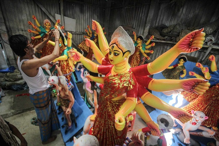 বিভিন্ন এলাকার পূজা মণ্ডপগুলো ঘুরে দেখা গেছে, মঞ্চ তৈরি ও প্রতিমাকে কাপড় পরানোর শেষ মুহূর্তের কাজ চলমান। কোথাও কোথাও প্রতিমাকে সাজিয়ে তোলার কাজও চলছে। মন্দিরের চারপাশও সাজানো হয়েছে বাহারি নকশায়। মন্দিরের প্রধান ফটকসহ অন্যান্য জায়গাগুলোও বর্ণিল করে তোলার কাজ চলছে।