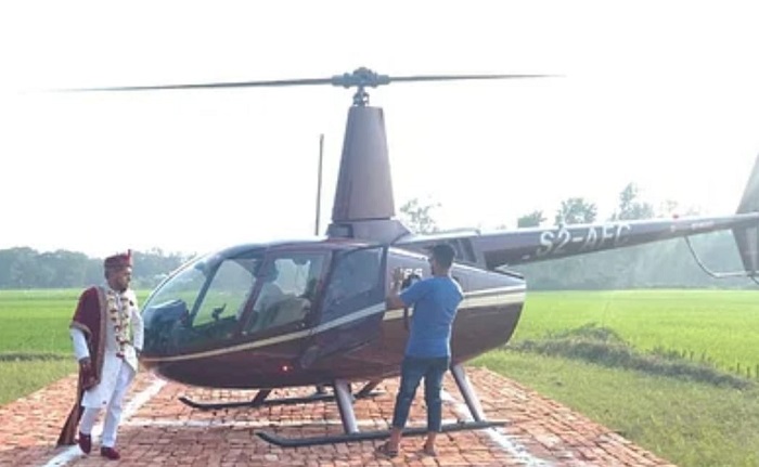 বরের বাবা লতিফুর রহমান জানান, বড় ছেলের বিয়েকে স্মরণীয় করে রাখতে আর নববধূকে বরণ করে আনতে হেলিকপ্টার ভাড়া করেন।