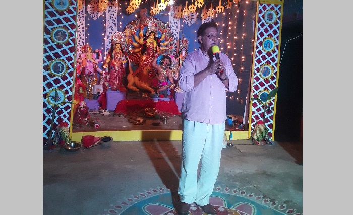 রেরাবার রাতে গোলাপেঞ্জে শ্রীচৈতন্য মন্দিরের দুর্গাপূজা পরিদর্শন করেন সমশের মবিন চৌধুরী