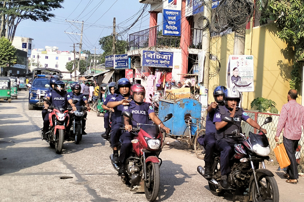রোববার (৫ নভেম্বর) বিকেলে মৌলভীবাজারের পুলিশ সুপার মো. মনজুর রহমান পিপিএম (বার) এর নেতৃত্বে ঊর্ধ্বতন পুলিশ কর্মকর্তা, কমলগঞ্জ থানার ওসি সঞ্জয় চক্রবর্তী, শমশেরনগর পুলিশ ফাঁড়ির ইনচার্জ ওসি (তদন্ত) শামীম আকনজীসহ আইনশৃঙ্খলা রক্ষাকারী বাহিনীদেরকে শমশেরনগর ও কমলগঞ্জ উপজেলা সদরে টহলে দেখা যায়।