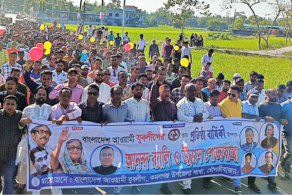 বাংলাদেশ আওয়ামী যুবলীগের ৫১তম প্রতিষ্ঠাবার্ষিকী উপলক্ষে মৌলভীবাজারের কমলগঞ্জে উপজেলা যুবলীগের আয়োজনে শনিবার (১১ নভেম্বর) দুপুরে আনন্দ র্যালি ও উন্নয়ন শোভাযাত্রা অনুষ্ঠিত হয়।