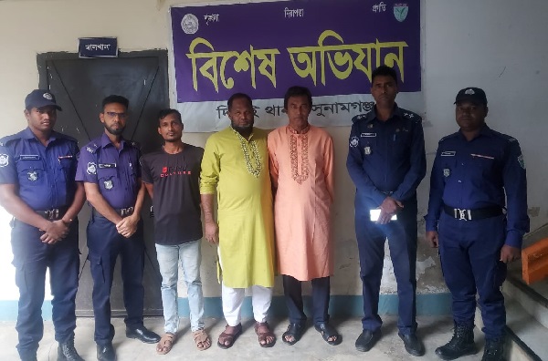 রবিবার রাত থেকে ও সোমবার দুপুর পর্যন্ত তাহিরপুর থানার ভারপ্রাপ্ত কর্মকর্তা মোহাম্মদ নাজিম উদ্দীনের নেতৃত্বে উপজেলার ট্যাকেরঘাট ও বাদাঘাট পুলিশ ফাঁড়ি ইনচার্জসহ ফোর্স নিয়ে অভিযান চালিয়ে তাদের আটক করা হয়।