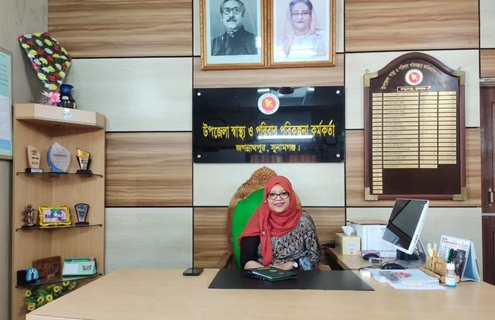 সুনামগঞ্জের জগন্নাথপুর উপজেলা স্বাস্থ্য কমপ্লেক্সে প্রতিষ্ঠার পর এই প্রথম নারী চিকিৎসক উপজেলা স্বাস্থ্য ও পরিবার পরিকল্পনা কর্মকর্তা হিসেবে দায়িত্ব পেয়েছেন।