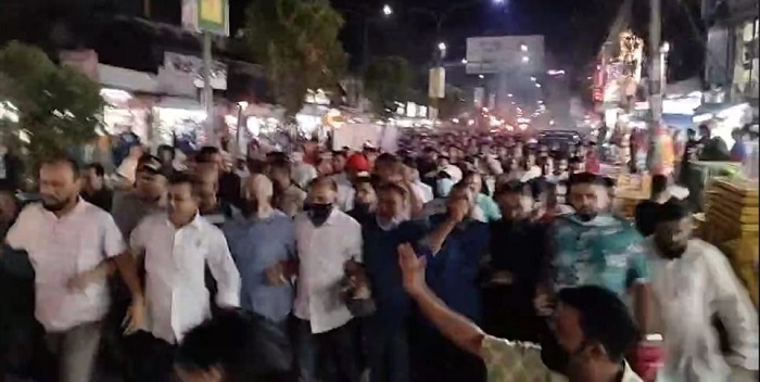 শনিবার সন্ধ্যায় নগরীর ধোপাদিঘীর পার এলাকা থেকে মশাল মিছিলটি শুরু হয়ে নগরীর প্রধান প্রধান সড়ক প্রদক্ষিণ শেষে পেপার পয়েন্টে গিয়ে শেষ হয়।