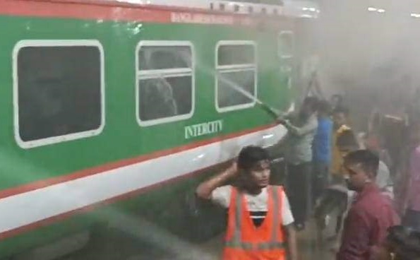সিলেট রেলওয়ে স্টেশনের ব্যবস্থাপক মো. নুরুল ইসলাম বলেন ট্রেনের একটি বগিতে আগুন লাগে। ট্রেনের বেশ কয়েকটি সিট পুঁড়ে গেছে। প্রাথমিকভাবে ধারনা করা হচ্ছে, দেশের পরিস্থিতিকে অস্থিতিশীল করতে কেউ অগ্নিকাণ্ডের ঘটনা ঘটায়। তদন্ত স্বাপেক্ষে বিস্তারিত বলা যাবে।