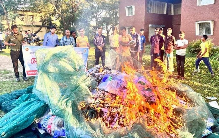 শুক্রবার (১ ডিসেম্বর) বিকাল ৪ টায় দিরাই পৌর শহরের মধ্য বাজারে উপজেলা নির্বাহী কর্মকর্তা ও নির্বাহী ম্যাজিস্ট্রেট মাহমুদুর রহমান মামুন'র নেতৃত্বে অভিযান চালিয়ে ৯ লাখ মিটার কারেন্ট জাল ও ১শতটি চায়না দোয়ারী জব্দ করা হয়। পরে জব্দ করা অবৈধ জাল উপজেলা রোডস্থ বিএডিসি মাঠে জ্বালিয়ে ধ্বংস করা হয়।