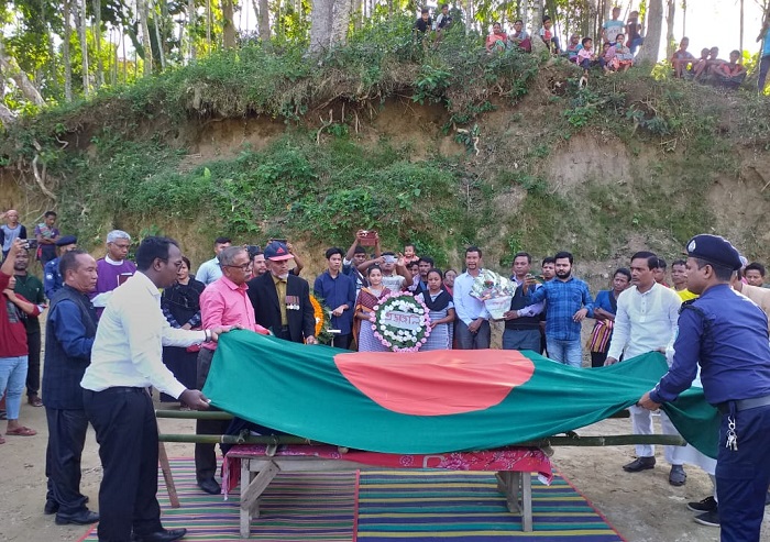 এরপর বিকাল ২ ঘটিকায় কুলাউড়া উপজেলা প্রশাসনের আয়োজনে রাষ্ট্রীয় সম্মাননা গার্ড অব অনার প্রদান করেন সহকারী কমিশনার (ভূমি) ও নির্বাহী ম্যাজিষ্ট্রেট মেহেদী হাসান। কুলাউড়া থানা পুলিশের উপ পরিদর্শক দেবাশীষ তালুকদার ও পুলিশ সদস্যরা। এসময় আরোও উপস্থিত ছিলেন সাবেক সংসদ সদস্য বীর মুক্তিযোদ্ধা এম, এ মতিন, কর্মধা ইউপি চেয়ারম্যান মহিবুল ইসলাম আজাদ,কুলাউড়া উপজেলা মুক্তিযোদ্ধা কমান্তার বীর মুক্তিযোদ্ধা সুশীল চন্দ্র দে, মুক্তিযোদ্ধা হাবিবুর রহমান, খাসি সোশ্যাল কাউন্সিলের সাধারন সম্পাদক ফিলা পতমী, প্রিচিংলি সুঙ, কুবরাজ আন্ত পুঞ্জি উন্নয়ন সংগঠনের সাধারণ সম্পাদক ও আদিবাসী নারী নেত্রী ফ্লোরা বাবলি তালাং, পালক পাইরিন সুটিং, খাসি সোশ্যাল কাউন্সিলের তথ্য ও প্রচার সম্পাদক সাজু মারছিয়াং, কর্মধা ইউপি সদস্য সিলভেস্টার পাঠাং, খাসি স্টুডেন্ট ইউনিয়ন সিলেট শাখার সভাপতি অ্যালিজাক তাংসং, রাজু রুপসি, ইভিনিং ইয়াংইয়ুং সহ প্রমুখ।