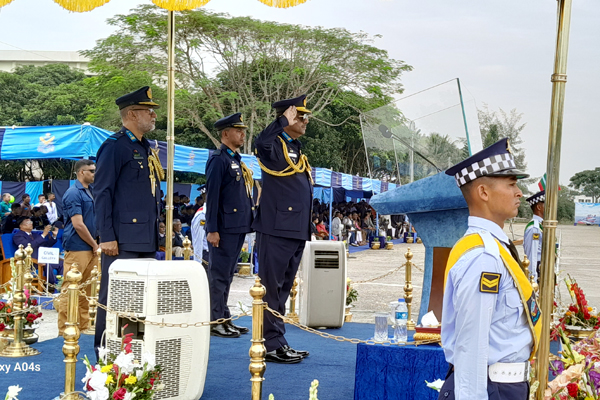 এর আগে বিমান বাহিনী প্রধান প্যারেড গ্রাউন্ডে এসে পৌঁছলে বিমান বাহিনীর ঘাঁটি জহুরুল হক এর এয়ার অধিনায়ক এয়ার ভাইস মার্শাল মো. বদরুল আমিন, ওএসপি, বিইউপি, এনডিসি, এএফডব্লিউসি, পিএসসি এবং রিক্রুটস্ ট্রেনিং স্কুল এর অধিনায়ক গ্রুপ ক্যাপ্টেন মো. আহসানুর রহমান. জিইউপি, এএফডব্লিউসি, পিএসসি তাকে স্বাগত জানান।