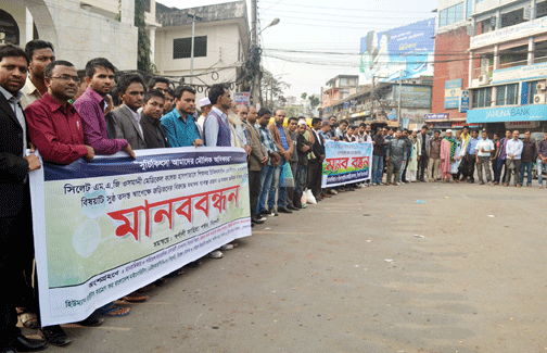 বুধবার দুপুরে নগরীর কোর্ট পয়েন্টে স্বর্নালী সাহিত্য পর্ষদ, সিলেট’র সমন্বয়ে,মানবাধিকার ও পরিবেশ সাংবাদিক সোসাইটি মাপসাস সিলেট বিভাগীয় কমিটি,বৃত্তর সিলেট গণদাবী পরিষদ, হিউম্যান রাইটস কংগ্রেস ফর বাংলাদেশ মাইনোরিটিস (এইচআরসিবিএম), জৈন্তিয়া জনকল্যাণ ফেডারেশন, মাদক ও যৌতুক বিরোধী সংগঠন চিরন্তন, স্বাধীন ধারা সিলেট, সৃষ্টি সাহিত্য পরিষদ এর যৌথ উদ্যোগে আয়োজিত মানববন্দনে তারা এ দাবি জানান।