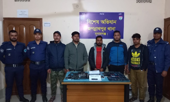 সুনামগঞ্জের জগন্নাথপুরে দলবদ্ধ একটি চক্রের ৫ সদস্যকে গ্রেপ্তার করা হয়েছে। চোরাই মোবাইল ক্রয়-বিক্রয় করতো এমন অভিযোগে পুলিশ বুধবার রাতে তাদের কে গ্রেপ্তার করে। এসময় ৬৭টি মোবাইল ও ৪টি ট্যাব উদ্ধার করা হয়।