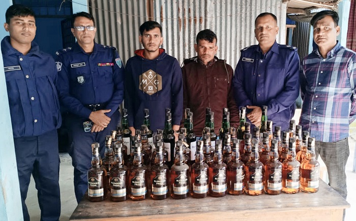 সোমবার বিকালে কাশিমনগর পুলিশ ফাঁড়ি এস.আই ফজলুর হক উপজেলার ধর্মঘর ইউনিয়নের কালিকাপুর গ্রামে অভিযান চালিয়ে আশরাফ আলীর ছেলে মাদক ব্যবসায়ী মোঃ রফিক মিয়া (৩৫) ও জয়নগর গ্রামের ইদ্রিছ মিয়ার ছেলে শাহিন মিয়াকে(২৫) আ ট ক করে। এ সময় রফিক মিয়ার বসত ঘরে লুকায়িত ৪৮ বোতল ভারতীয় মদ জব্দ করা হয়। যার আনুমানিক মূল্য প্রায় ১ লক্ষ ৪২ হাজার টাকা।