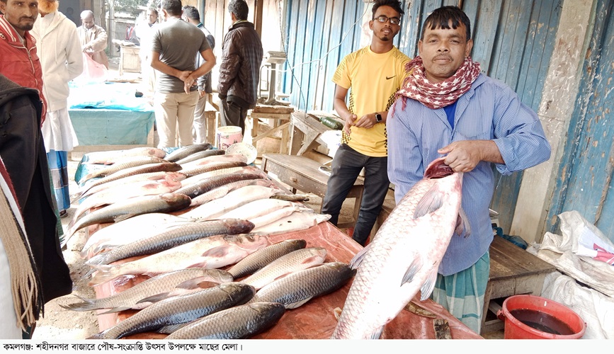 মাছের আড়ৎদার আব্দুল জলিল মিয়া বলেন, আগের চেয়ে এখন দেশীয় মাছের সরবরাহ অনেক কমে গেছে। সাধারণত বাজারে এত বড় আকারের মাছ উঠে না। পৌষ সংক্রান্তি উপলক্ষে চাহিদা অনুযায়ী দেশের বিভিন্ন অঞ্চলের হাওর, বাওর, বিল ও বড় নদী থেকে ধরে আনা বড় আকারের মাছ এ বিশেষ দিনের জন্য সরবরাহ করতে হয়। মাছের মেলায় রোববার গভীর রাত এমনকি সোমবার পর্যন্ত এ বিক্রয় চলবে বলে আড়ৎদার জানান।