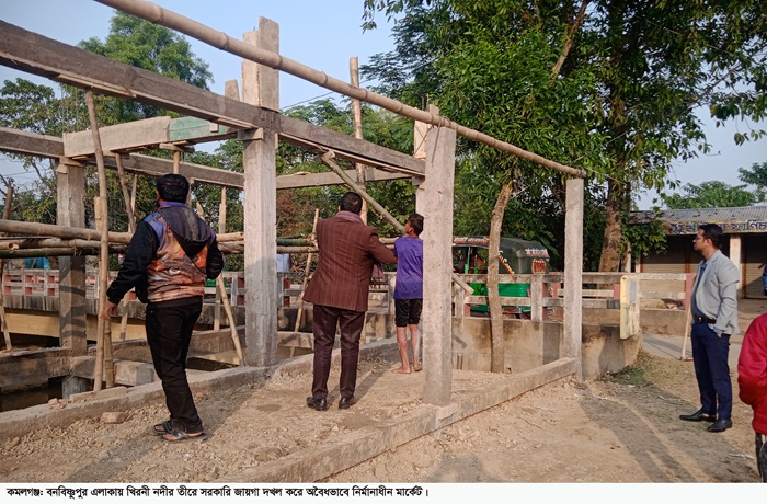 মৌলভীবাজারে কমলগঞ্জ উপজেলার মুন্সীবাজার ইউনিয়নের খিরনী নদীর তীরে বনবিষ্ণুপুর এলাকায় সরকারি জায়গা দখল করে একটি প্রভাবশালী মহলের বিরুদ্ধে অবৈধভাবে পাকা মার্কেট স্থাপনা নির্মাণ করার অভিযোগ পাওয়া গেছে।