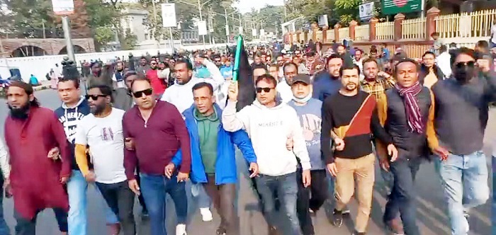 দ্রব্যমূল্যের সীমাহীন ঊর্ধ্বগতি, বিএনপি চেয়ারপার্সন খালেদা জিয়াসহ রাজনৈতিক মামলায় সকল বন্দীদের মুক্তি, সকল মামলা প্রত্যাহার ও অবৈধ সংসদ বাতিলের দাবিতে কালো পতাকা মিছিল করেছে সিলেট মহানগর ও জেলা যুবদল।