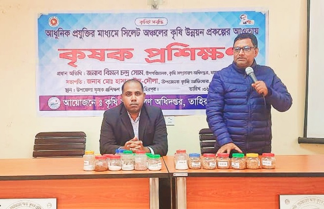 সুনামগঞ্জের তাহিরপুরে আধুনিক প্রযুক্তির মাধ্যমে সিলেট অঞ্চলের কৃষি উন্নয়ন প্রকল্পের আওতায় কৃষকদের কৃষক প্রশিক্ষণ অনুষ্ঠিত হয়েছে।