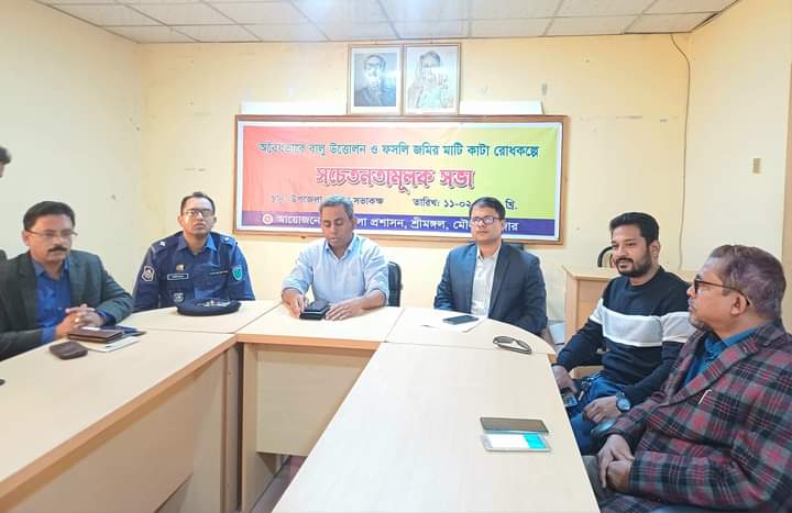 মৌলভীবাজারের শ্রীমঙ্গল উপজেলায় অবৈধভাবে বালু উত্তোলন ও ফসলি জমির মাটি কাটা রোধকল্পে সচেতনতা মূলক সভা অনুষ্ঠিত হয়েছে।