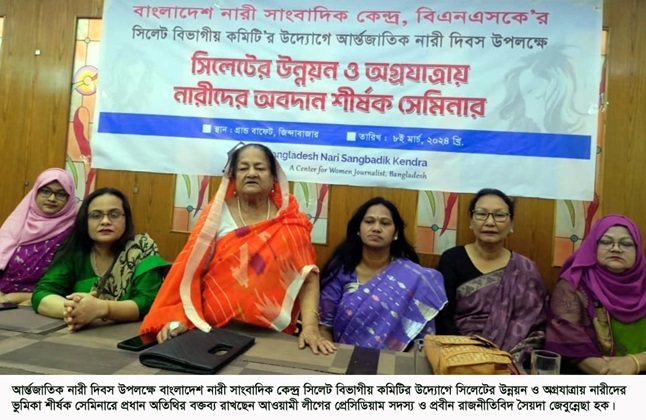 তিনি শুক্রবার (৮ মার্চ) সন্ধ্যায় নগরীর পূর্ব জিন্দাবাজারের একটি অভিজাত রেস্টুরেন্টে আন্তর্জাতিক নারী দিবস উপলক্ষে বাংলাদেশ নারী সাংবাদিক কেন্দ্র সিলেট বিভাগীয় কমিটির উদ্যোগে আয়োজিত ‘সিলেটের উন্নয়ন ও অগ্রযাত্রায় নারীদের ভূমিকা’ শীর্ষক সেমিনারে প্রধান অতিথির বক্তব্যে এ কথা বলেন।
