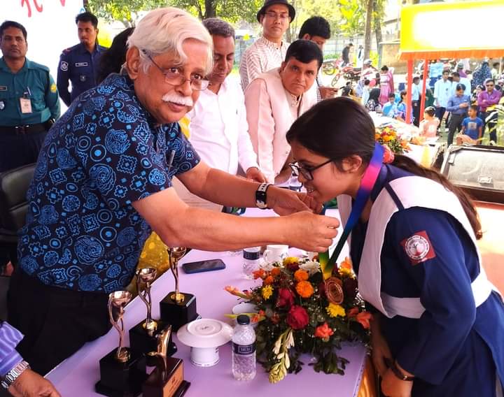 গণিত উৎসব শেষে বিজয়ী শিক্ষার্থীদের মাঝে মেডেল, সনদপত্র বিতরণ করেন অতিথিরা।