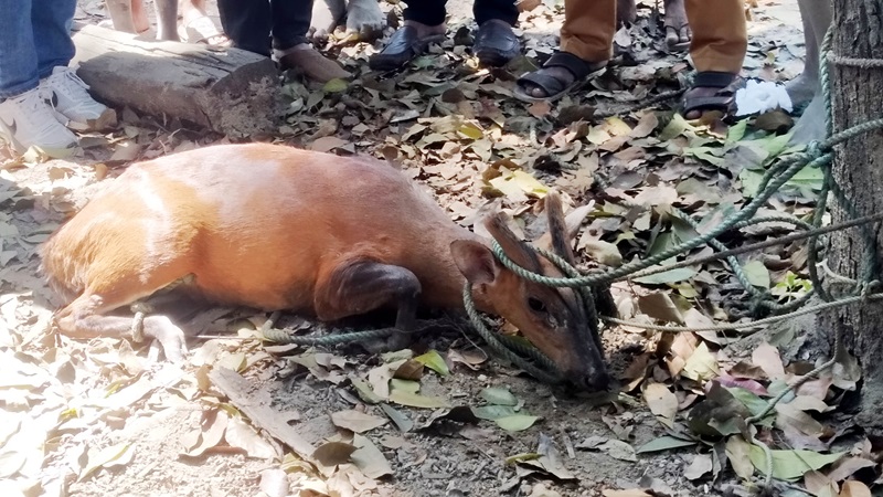 মৌলভীবাজারের কমলগঞ্জের বন থেকে লোকালয়ে বেরিয়ে আসা একটি মায়া হরিণ উদ্ধার করে বন বিভাগের কাছে হস্তান্তর করেছেন স্থানীয় কয়েকজন তরুণ।