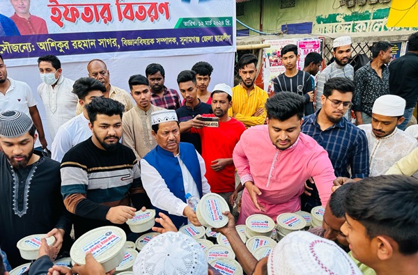 মঙ্গলবার (১২ মার্চ) বিকেলে শহরের চেম্বার অব কমার্সের সামনে জেলা ছাত্রলীগের বিজ্ঞান বিষয়ক সম্পাদক আশিকুর রহমান সাগরের উদ্যোগে ২৫০ জন ছিন্নমূল মানুষের এসকল ইফতার বিতরণ করা হয়।