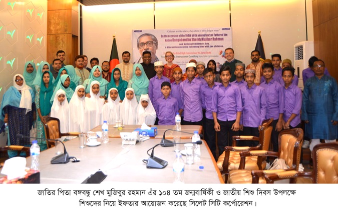 জাতির পিতা বঙ্গবন্ধু শেখ মুজিবুর রহমানের ১০৪তম জন্মবার্ষিকী ও জাতীয় শিশু দিবস উপলক্ষে শিশুদের নিয়ে ইফতার আয়োজন করেছে সিলেট সিটি করপোরেশন (সিসিক)।